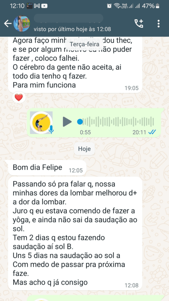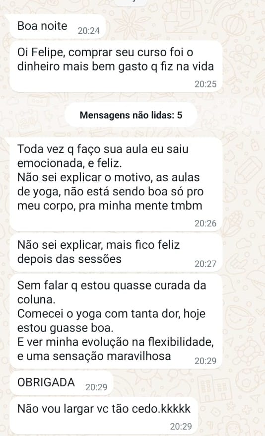 Me chamo Felipe e sou o Professor responsável pelo estúdio de Yoga Online. Praticante de Yoga há 10 anos e professor há 8, já ajudei milhares de pessoas a conquistar um corpo muito flexível e forte e uma mente mais calma, concentrada, disciplinada e resiliente, através da prática de Yoga. Acredito no Yoga como uma poderosa ferramenta de autotransformação e autorealização. Iniciei minha prática procurando vencer uma depressão que tive após o suicídio do meu pai e encontrei nesta filosofia de vida um abrigo, uma ferramenta que foi capaz de me fazer enxergar com consciência meus padrões de pensamentos e mudá-los para viver uma vida mais feliz e completa. Hoje utilizo as técnicas do Yoga para lidar com qualquer desáfio que apareça em minha vida e te convido a praticar e sentir os benefícios que só o Yoga pode te proporcionar.